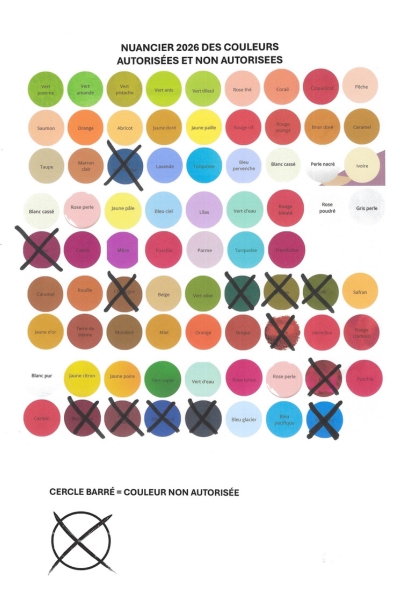 Couleurs interdites : noir, bleu marine, marron foncé, gris foncé et toutes les teintes sombres.